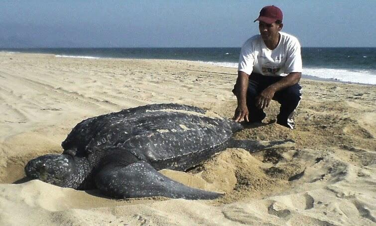 Deposita enorme tortuga laúd 70 huevos en playa de Guerrero.